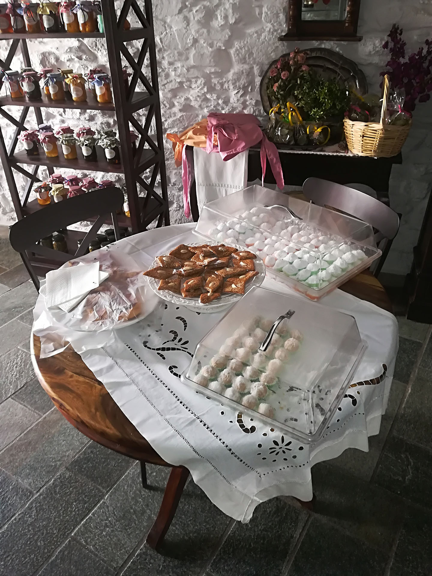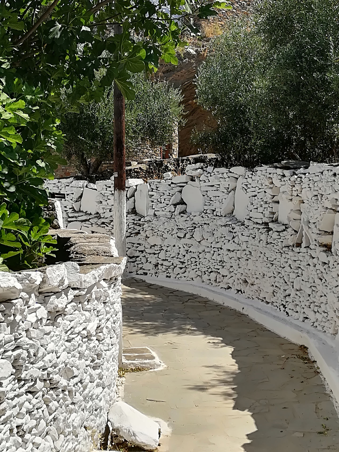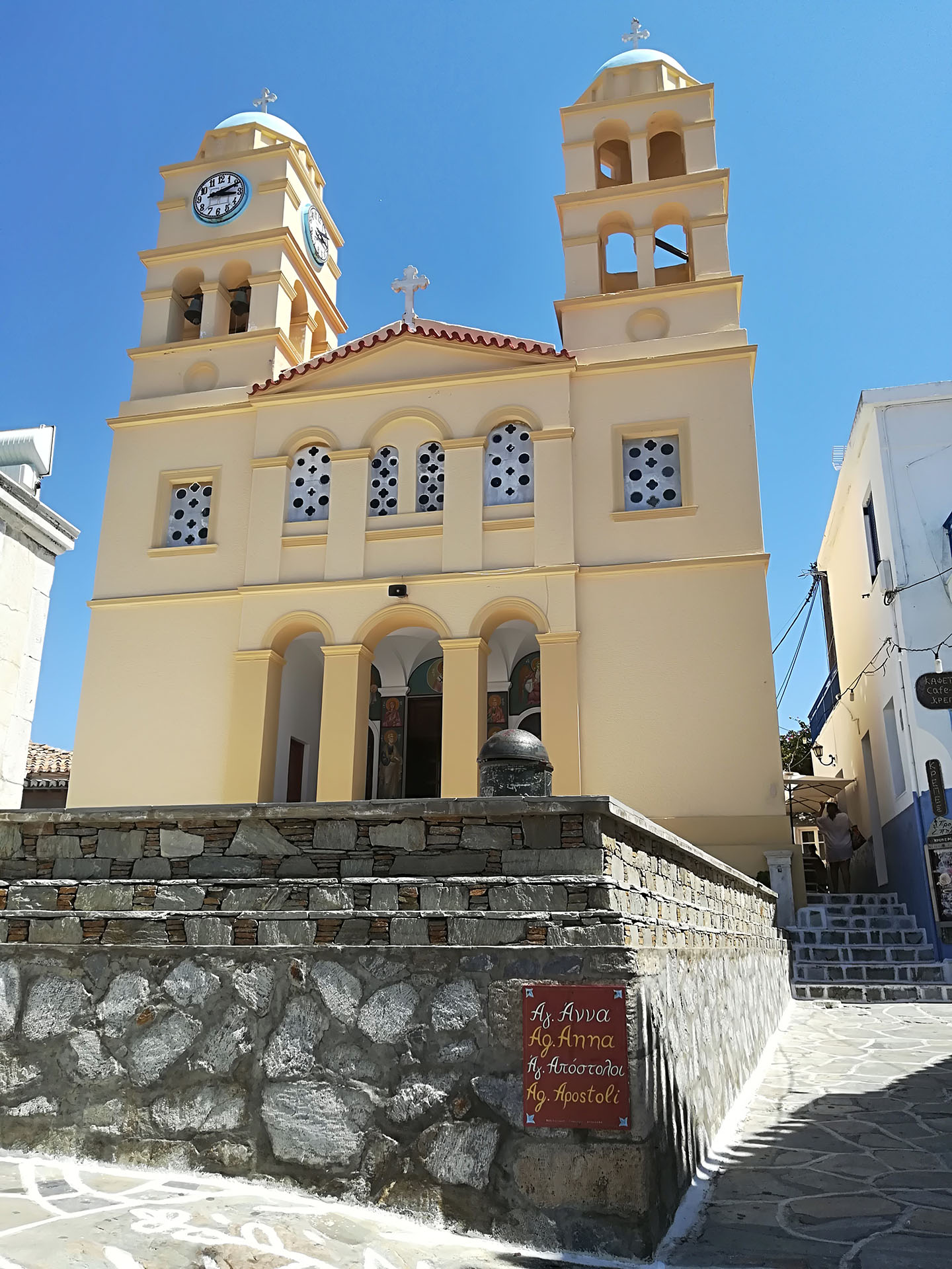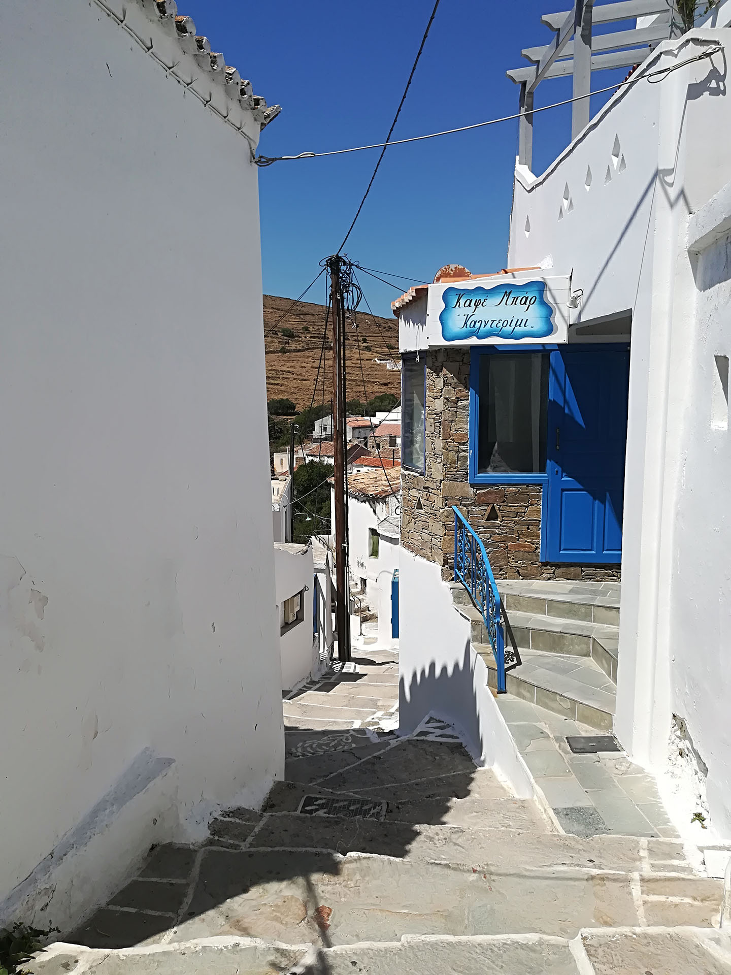 Η ξενάγηση συνεχίζει μέσα από το κεντρικό σοκάκι του χωριού την λεγόμενη πιάτσα. Εκεί θα χαιρετήσουμε της κυρίες του χωριού που κατά πάσα πιθανότητα θα κάθονται εκεί πίνοντας τον καφέ τους και συζητώντας τα νέα του νησιού.