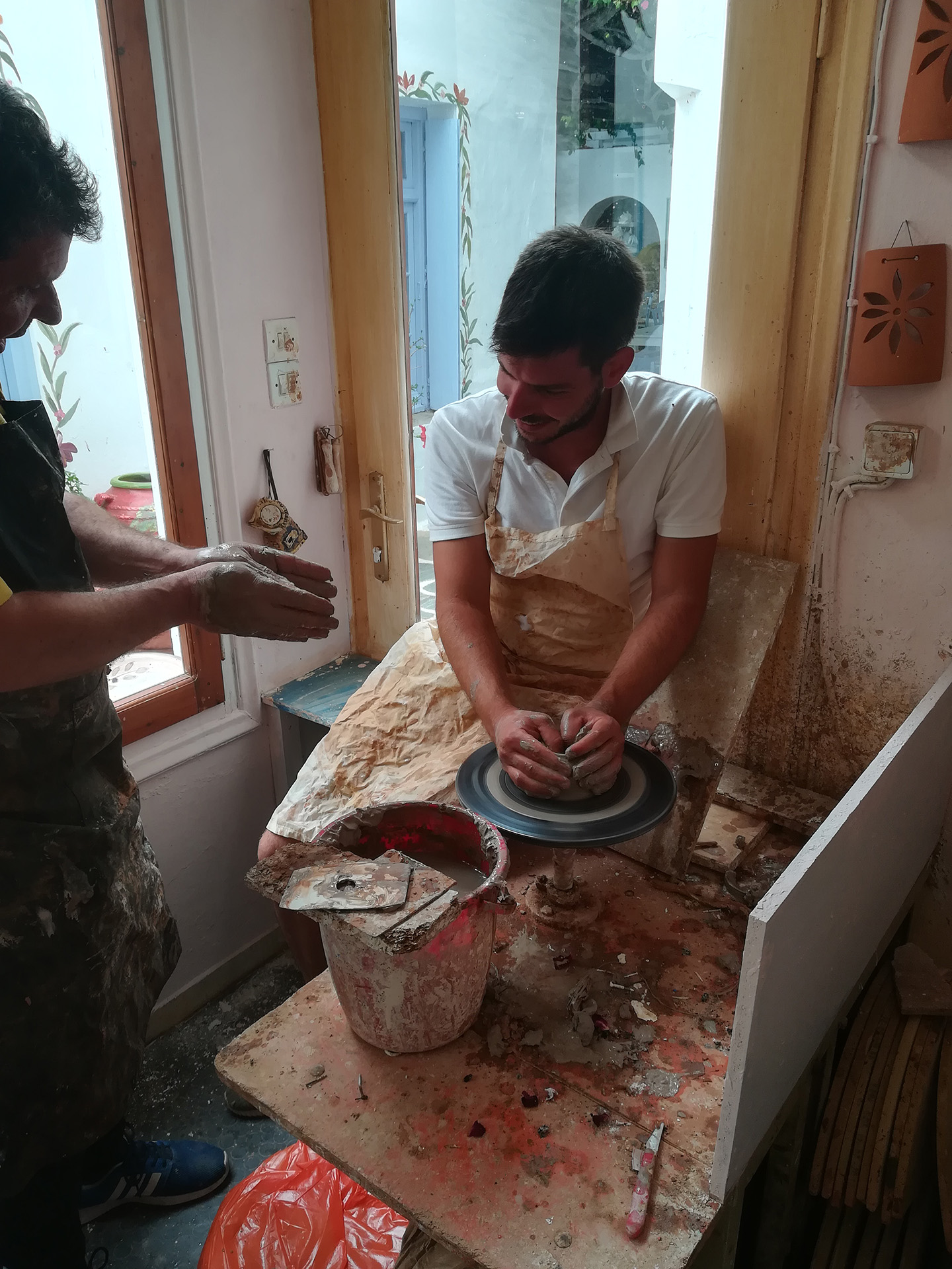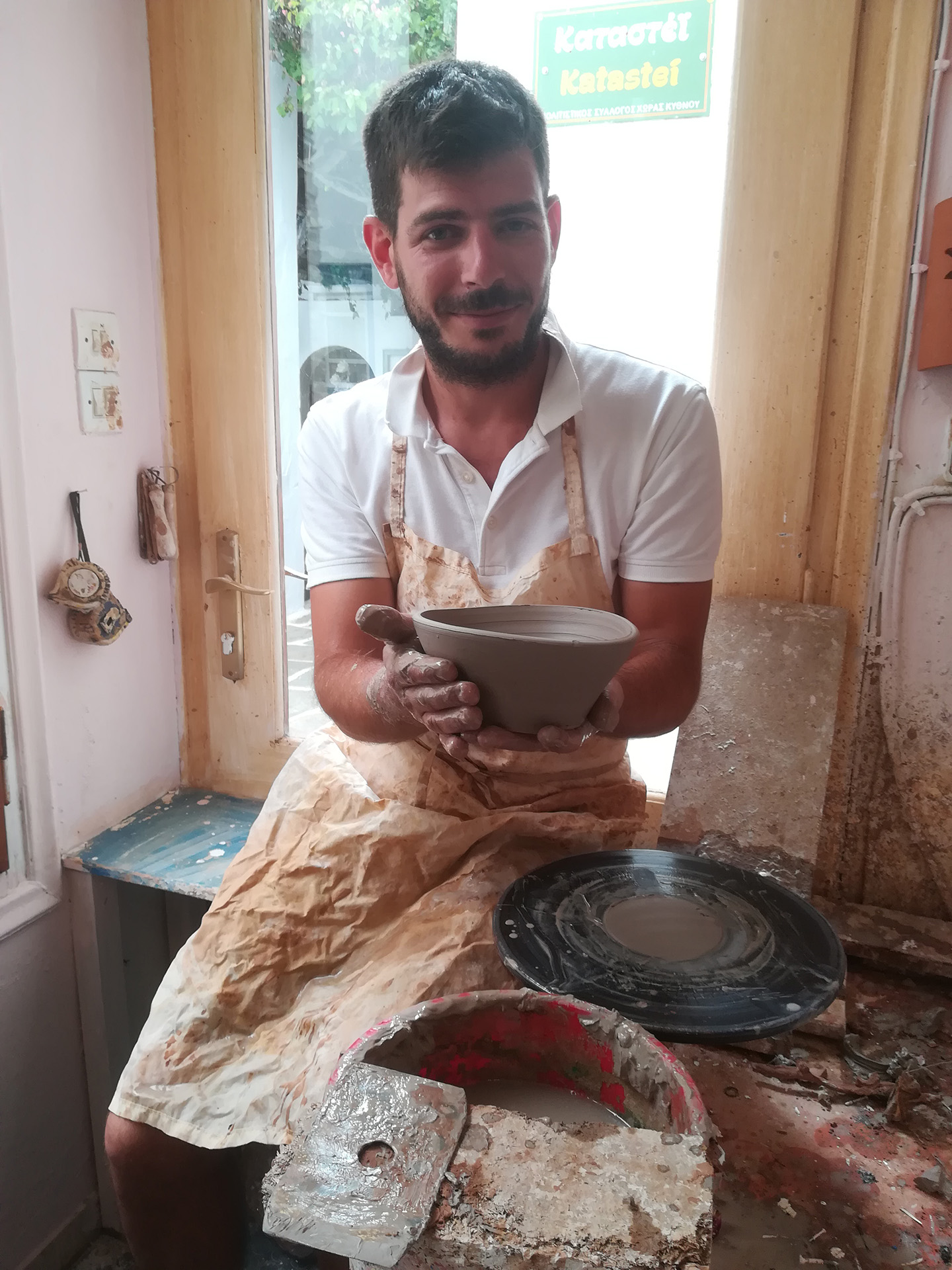 Το μάθημα ξεκινάει στην καρδιά της Χώρας από τον παλαιότερο αγγειοπλάστη του νησιού ο οποίος με πολύ απλά βήματα θα σας κατευθύνει έτσι ώστε να μπορέσετε να φτιάξετε μόνοι σας το σουβενίρ που θα πάρετε μαζί σας φεύγοντας από την Κύθνο.